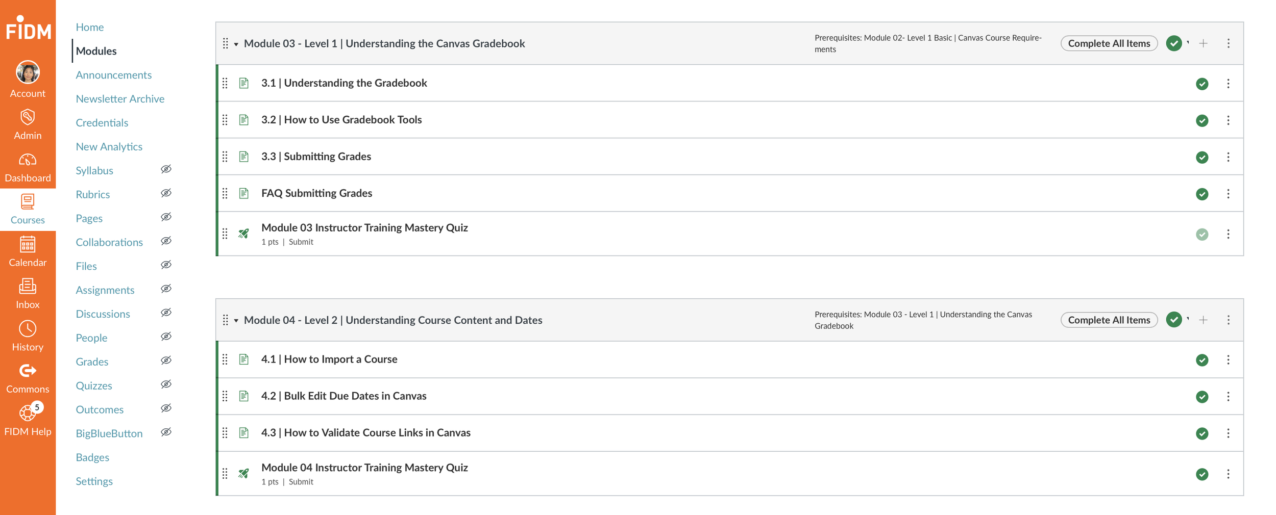Design quizzes and assessments to evaluate learners' understanding and proficiency with Canvas functionalities. After completion of each module, users must complete an assessment quiz where they are then awarded a badge reflecting their demonstrated level of competency.